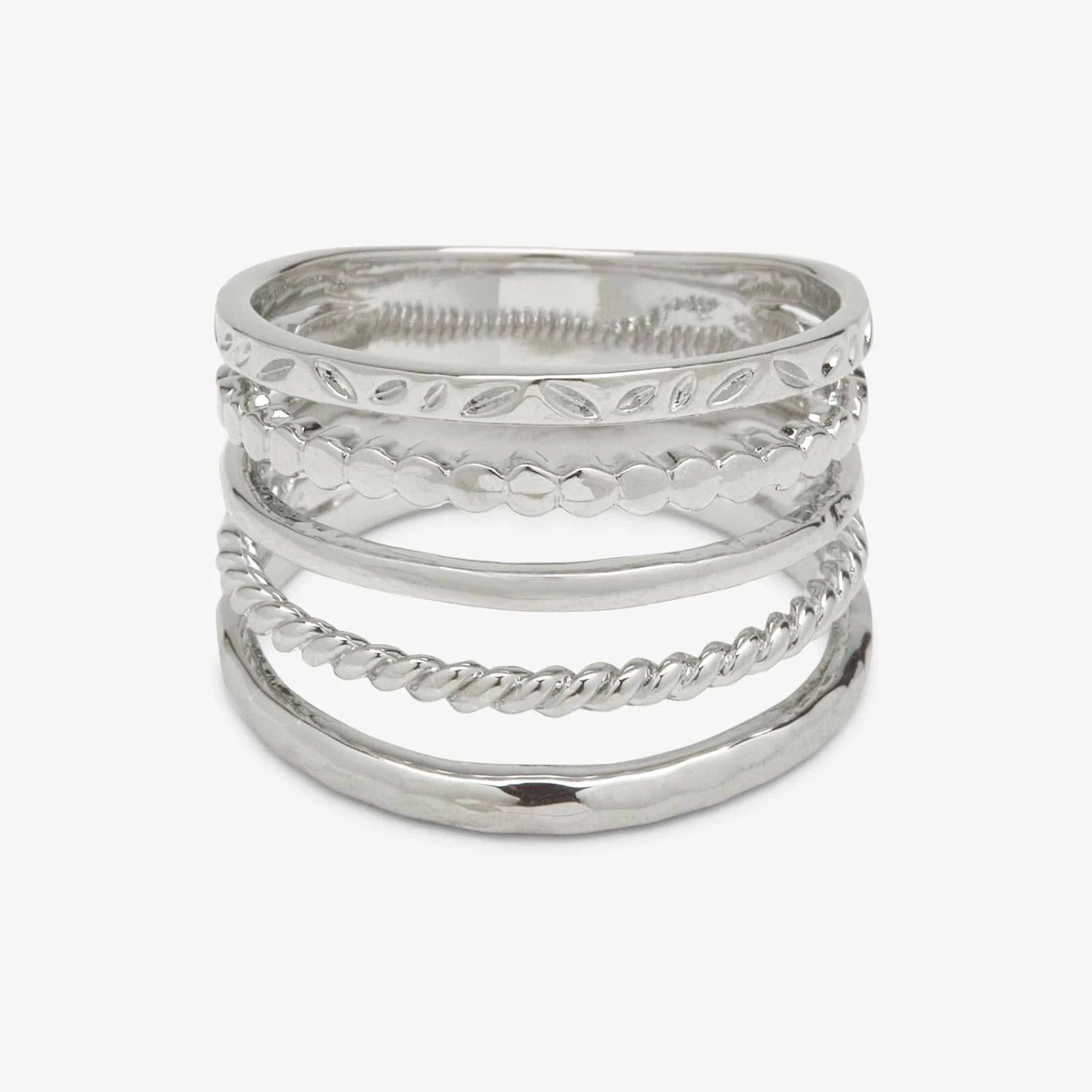 Creating the perfect ring stack just got oh so effortless, thanks to our 5 in 1 Ring. All one piece—but made to look like five separate bands—this stunning silver style features an array of textures for a multidimensional effect.