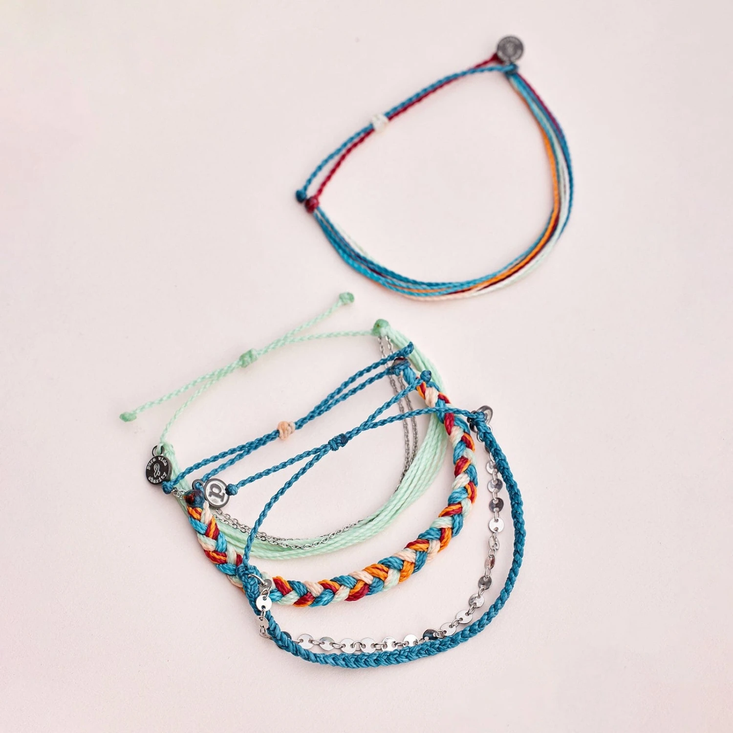 Help us create a world where everyone in the Autism community can receive the support they need with our Autism Society Pack. This three-piece set includes a string-and-chain design, a colorful braided bracelet, and a bitty-braid-and-mini-coin style.