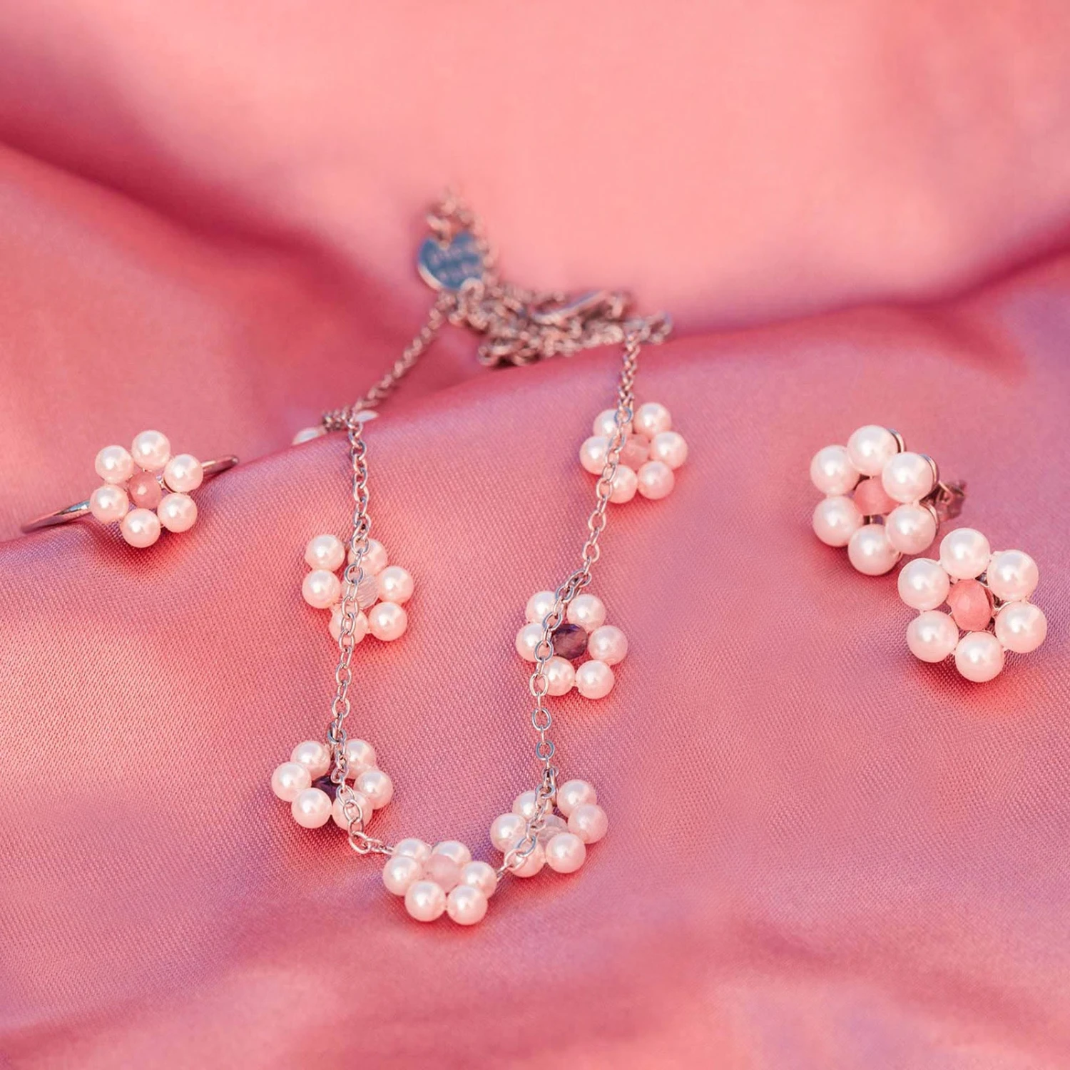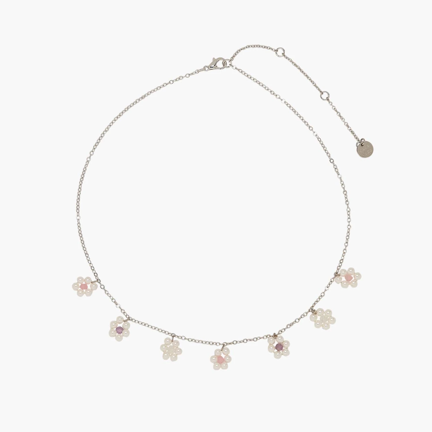 We’re throwing it back to 90s-inspired style with our Bitty Pearl Flower Choker. Set on a delicate silver chain, this too-cute design features a bouquet of dainty pearl flowers, which are accented with faceted opal and glass beads in the center!