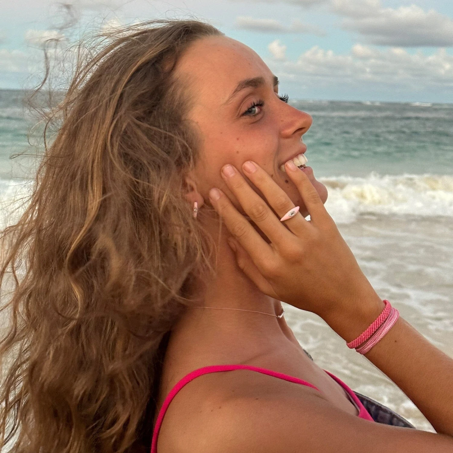 Shine bright and join the fight with our B4BC Marquise Enamel Ring. Set on a silver band and coated with pink enamel, this stunning style features a marquise-shaped stone that sparkles from any angle. For every ring sold, Pura Vida will donate 5% of the purchase price to Boarding for Breast Cancer, a nonprofit that advocates for early detection and a healthy, active lifestyle as the best means for preventing breast cancer, as well as providing support for Survivorship communities.