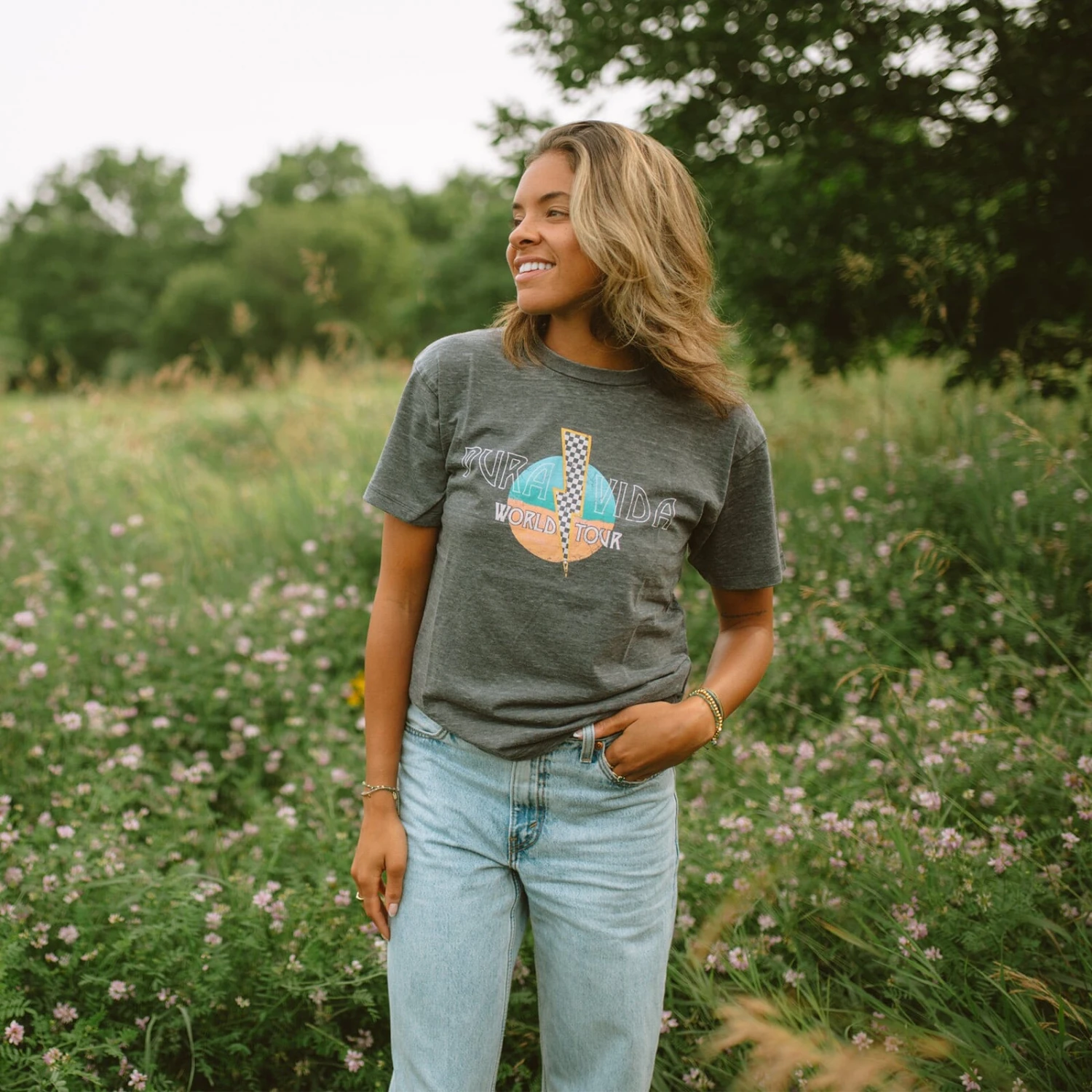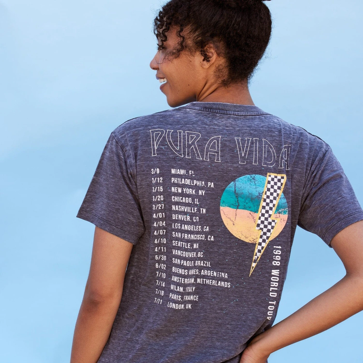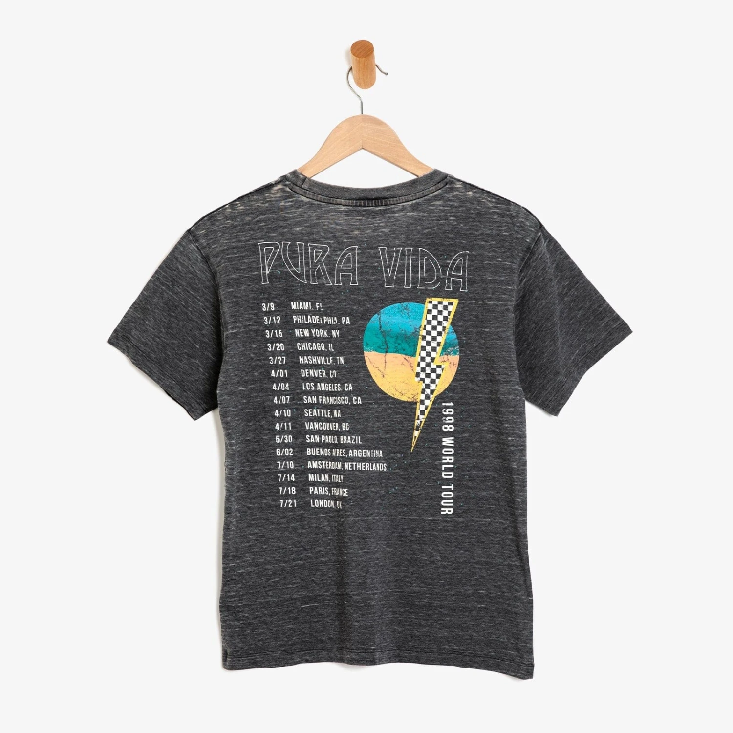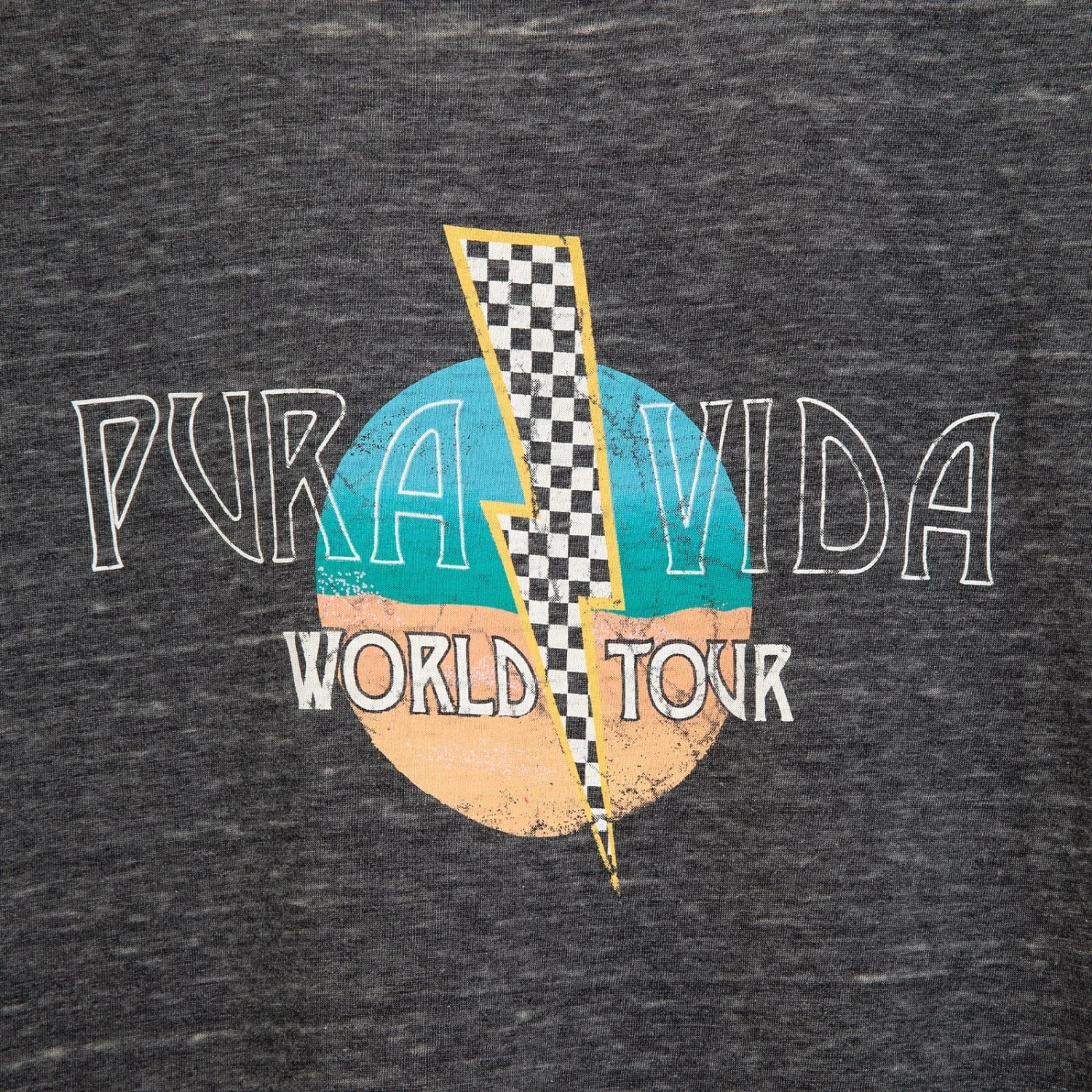 Rock out your look with the Bolt Burnout Tee! This electric tee features a Pura Vida World Tour graphic design on the front and back that’ll rock your socks off, even if you’re just hitting up the grocery store. Get it now and jam out in your new favorite tee.