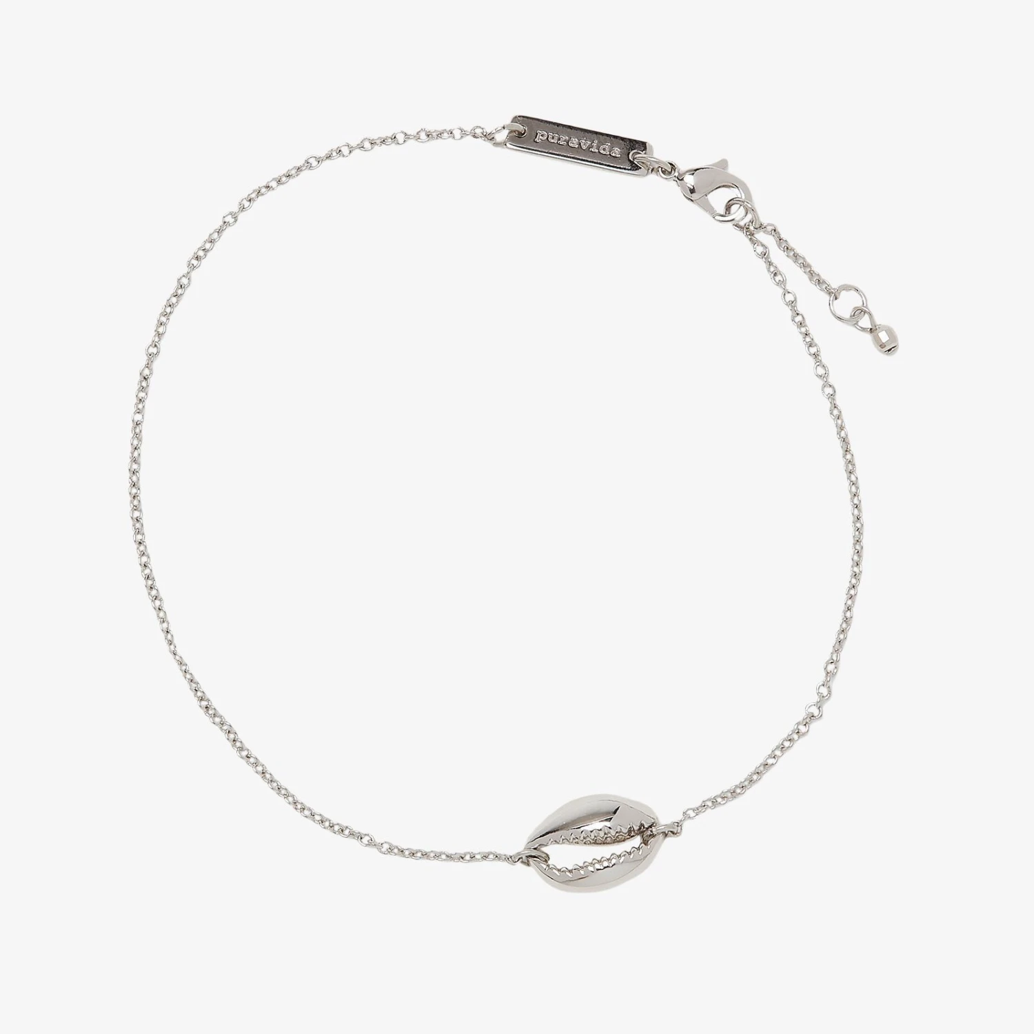 The Cowrie Chain Anklet is the perfect addition to your seashell collection. Its silver, dainty chain and cowrie shell charm will make you look like an instant beach babe with it wrapped around your ankle.