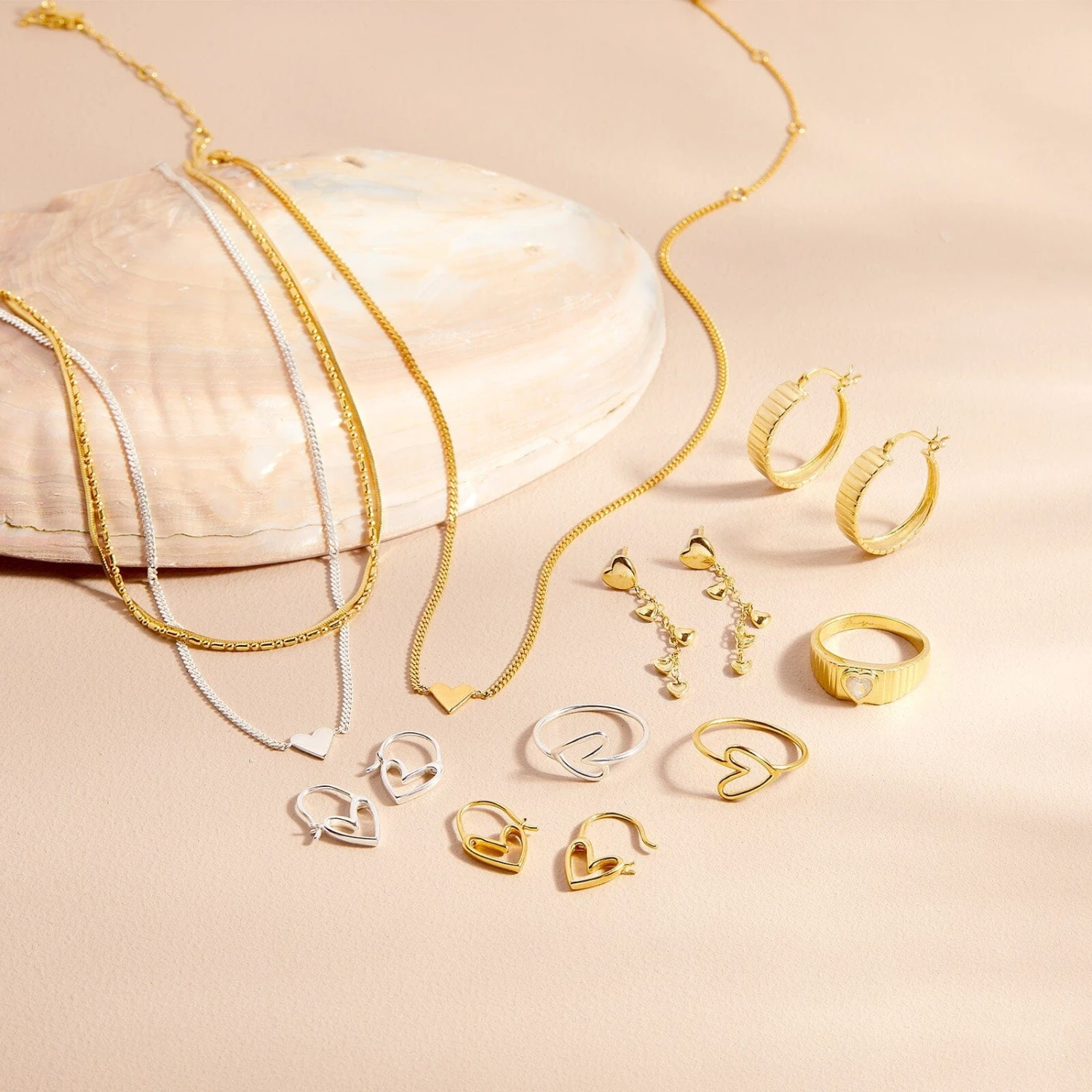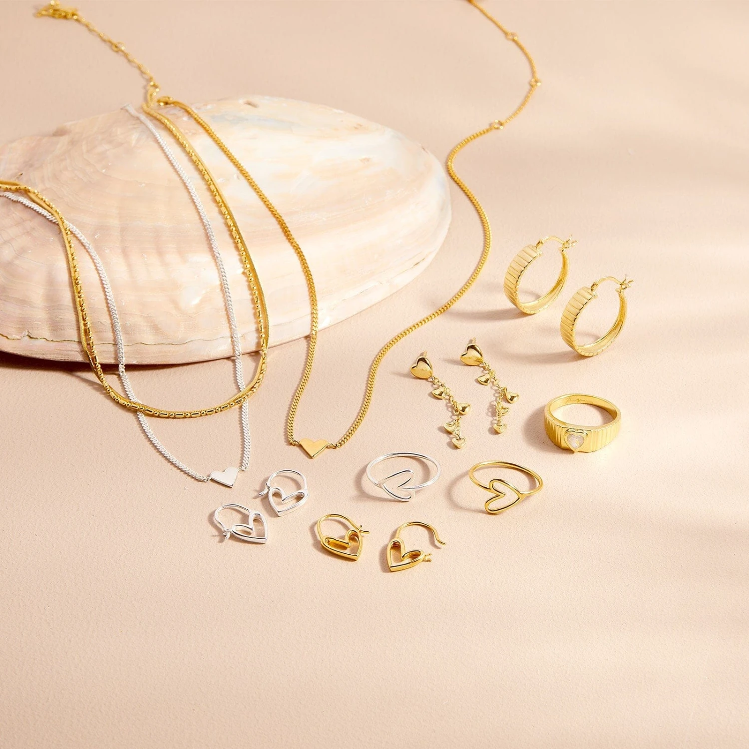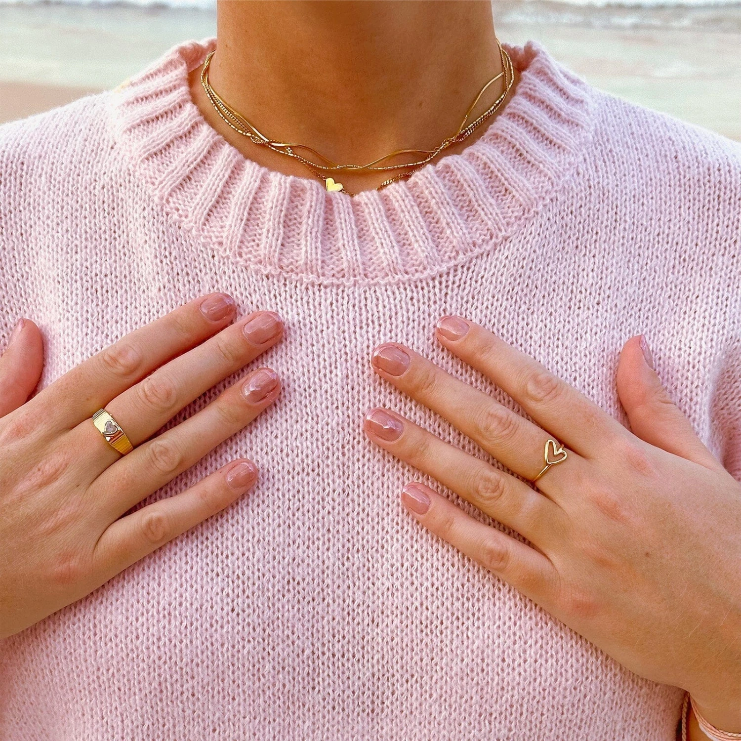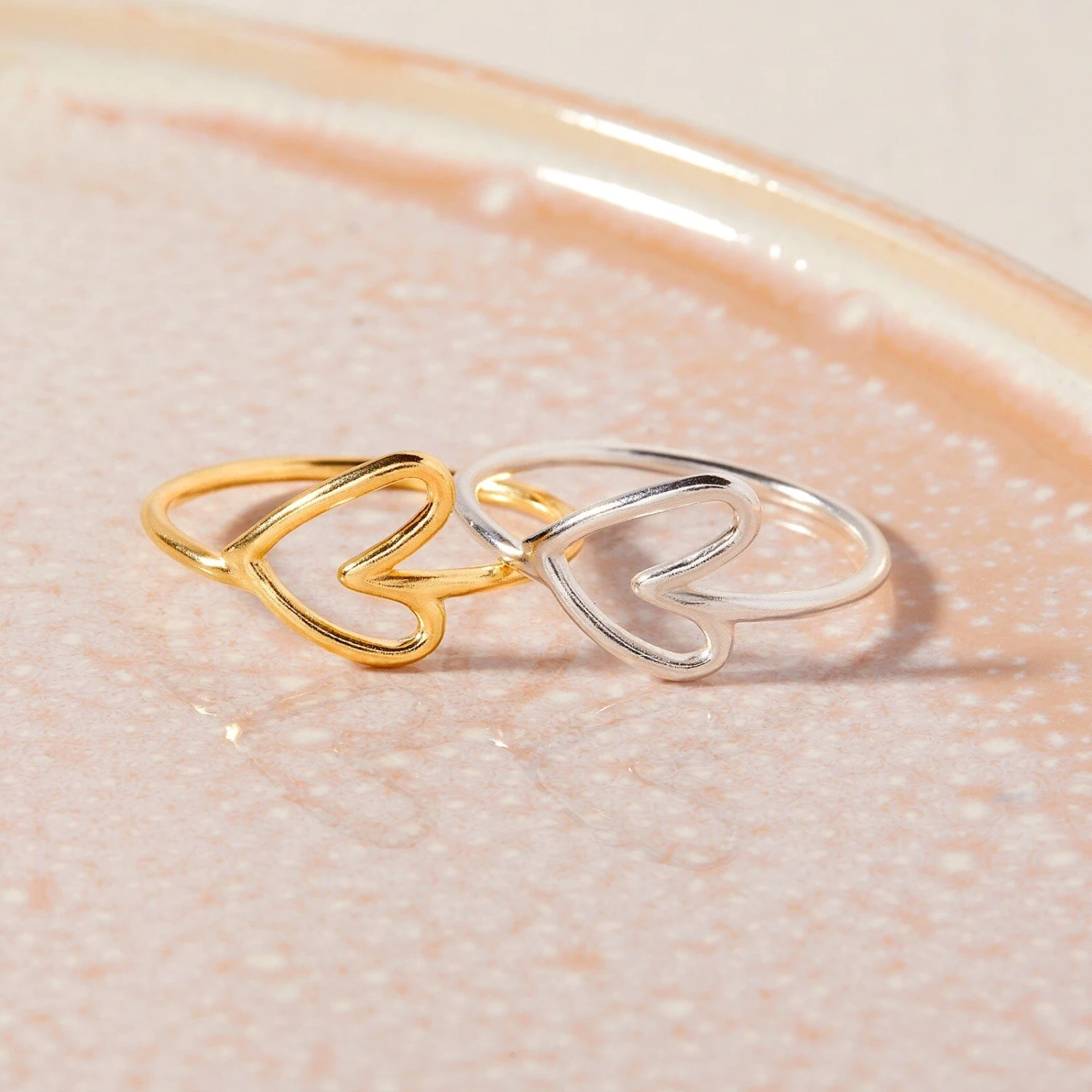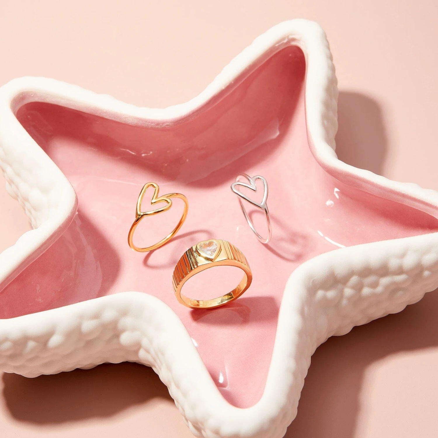 Ringing in Valentine’s Day with dainty, delicate details. This ring, available in silver and gold, measures about 1.2mm thick to add a subtle, on-theme addition to your existing rotation. Available in sizes 4-10.
