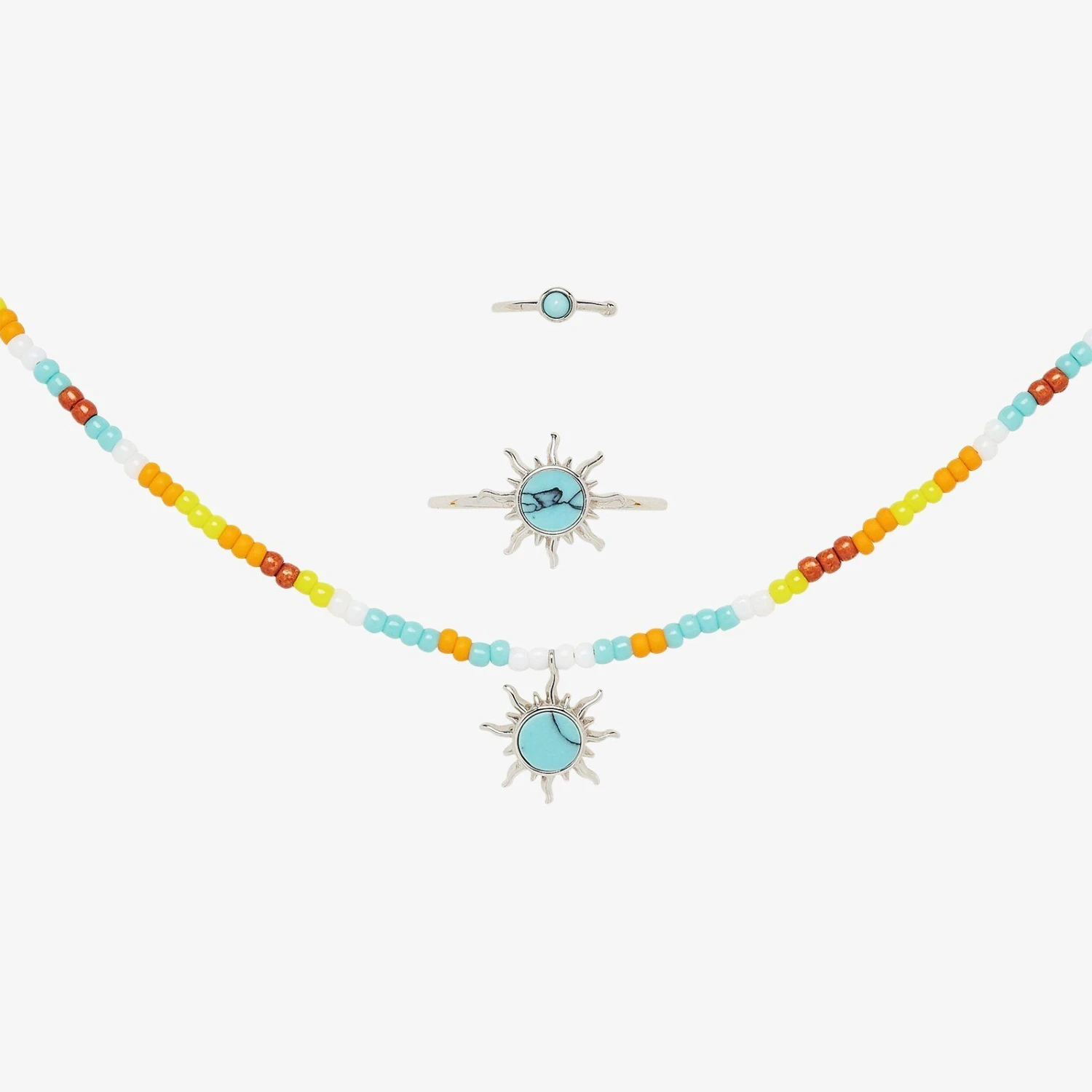 Designed by one of our absolute *fave* influencers, the Dreaming Outloud Jewelry Set features three boho-chic styles from the gorgeous @dreaming_outloud’s Hailey Miller. You’ll get a retro seed bead choker with a dangling sun charm, a matching sun ring and a simple ear cuff. Each piece is accented with a 100% genuine turquoise stone, so every design is unique (kinda like you!).