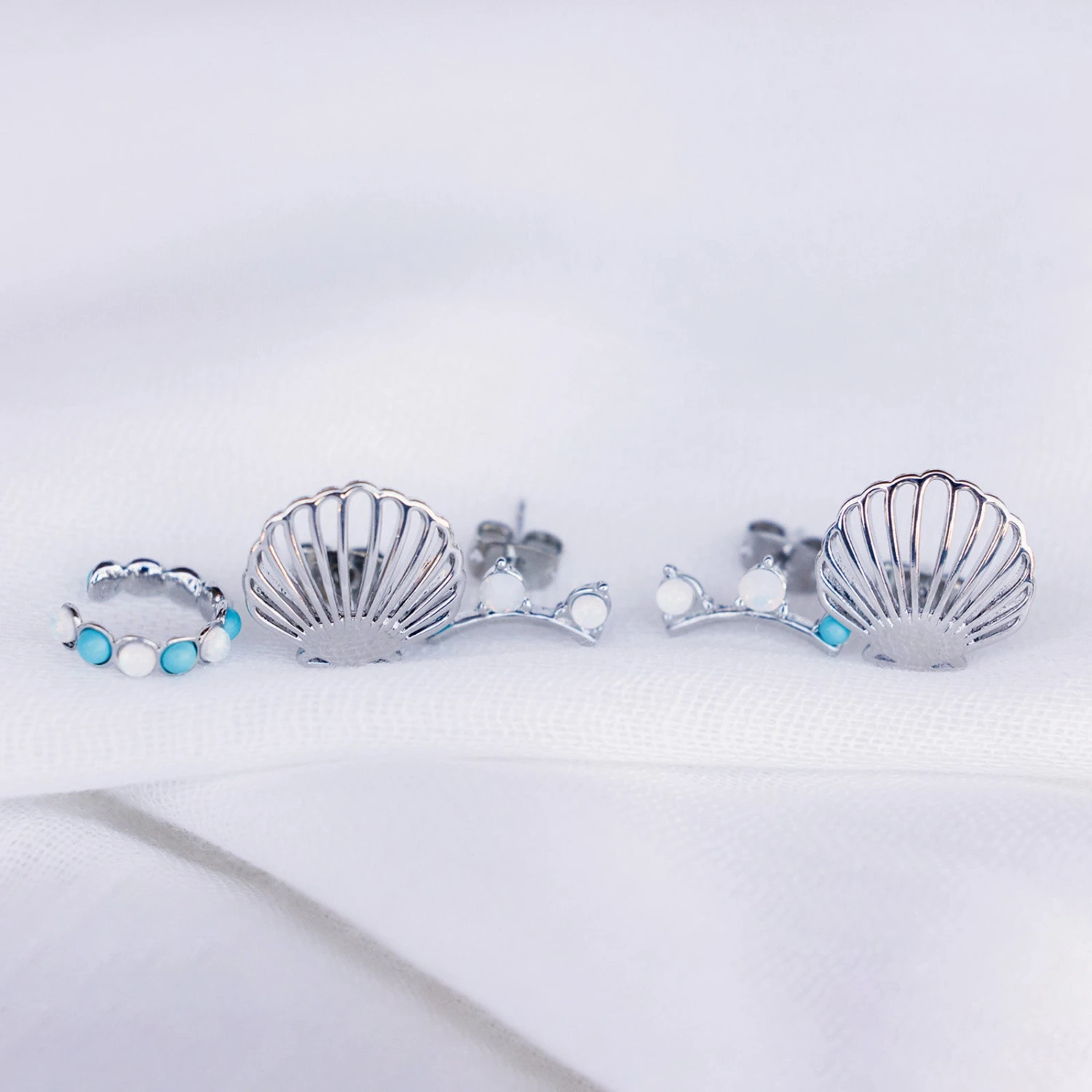 Embrace your inner mermaid with our Drift Earring Set. This perfect-for-summer pack features a trio of designs: the Delicate Shell Stud Earrings; eye-catching ear climbers; and a shimmering ear cuff.