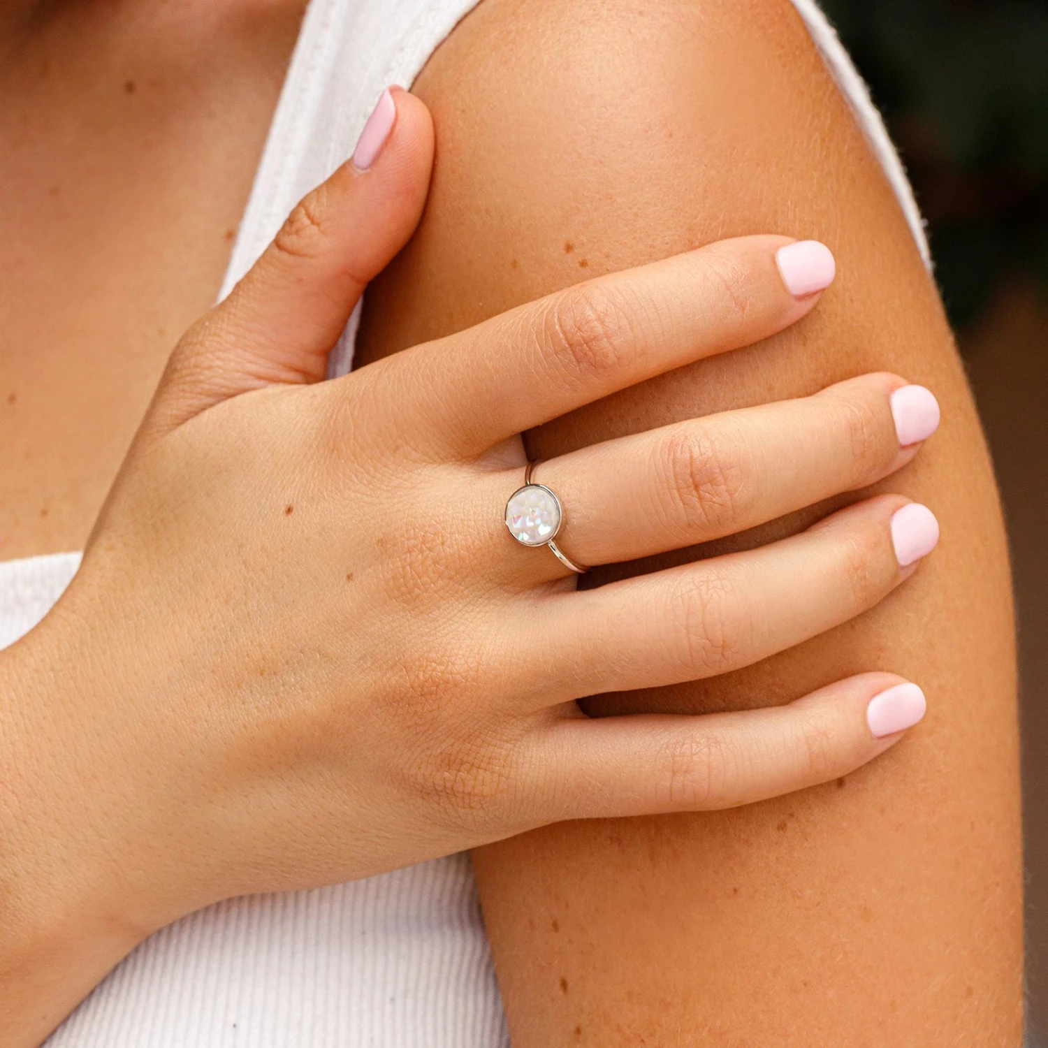 Looking for a dreamy design that’s both understated and eye-catching? Look no further than our Druzy Ring! This silver style comes with a delicate band and circular white druzy stone, with an iridescent finish for a hint of sparkle.