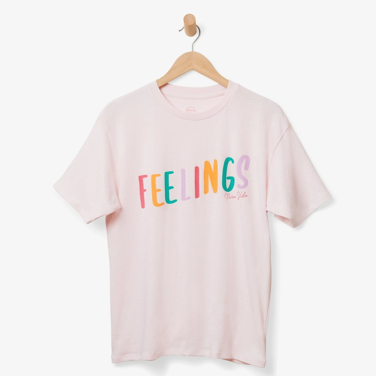 Feel all the feels with our new Feelings Tee! This short sleeve comes in a light pink wash with the word “FEELINGS” written across in pretty pastels. Never be afraid to talk about your feelings when you’re rockin’ this shirt! PS, after the first wash this one shrinks in all the right places for a perfect fit!