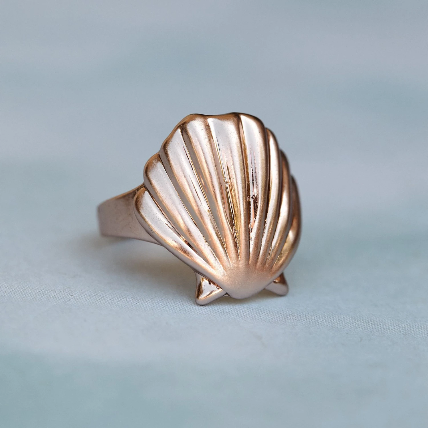 Sea and be seen in our Flat Shell Ring. This bold, beachy style comes in two metal finishes—sleek silver and blushing rose gold—with a wraparound shell design that really knows how to make a splash.