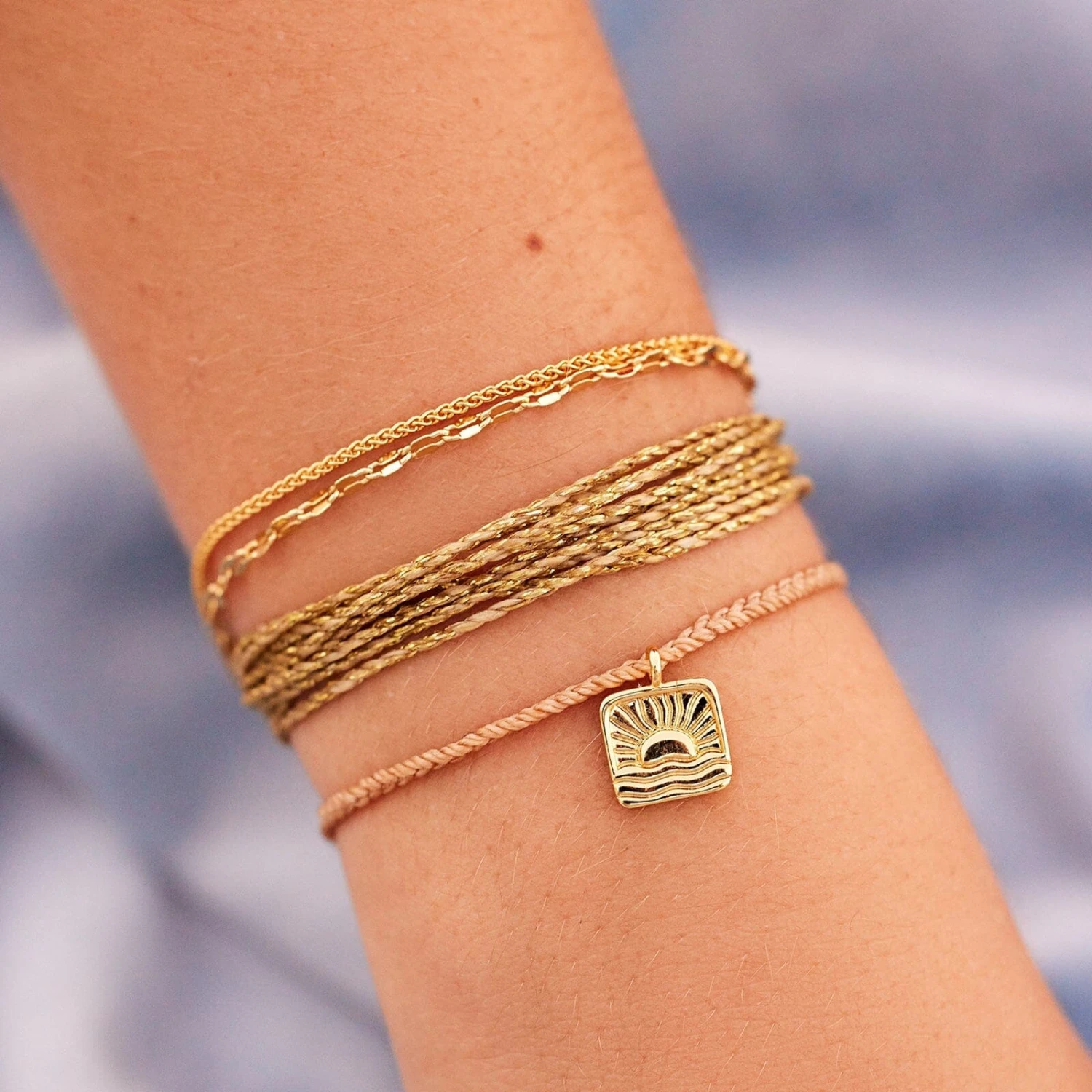 Golden hour wherever you go. Gorgeous combinations of gold-plated charms, chains, and mixed materials perfect for catching your next sunset.