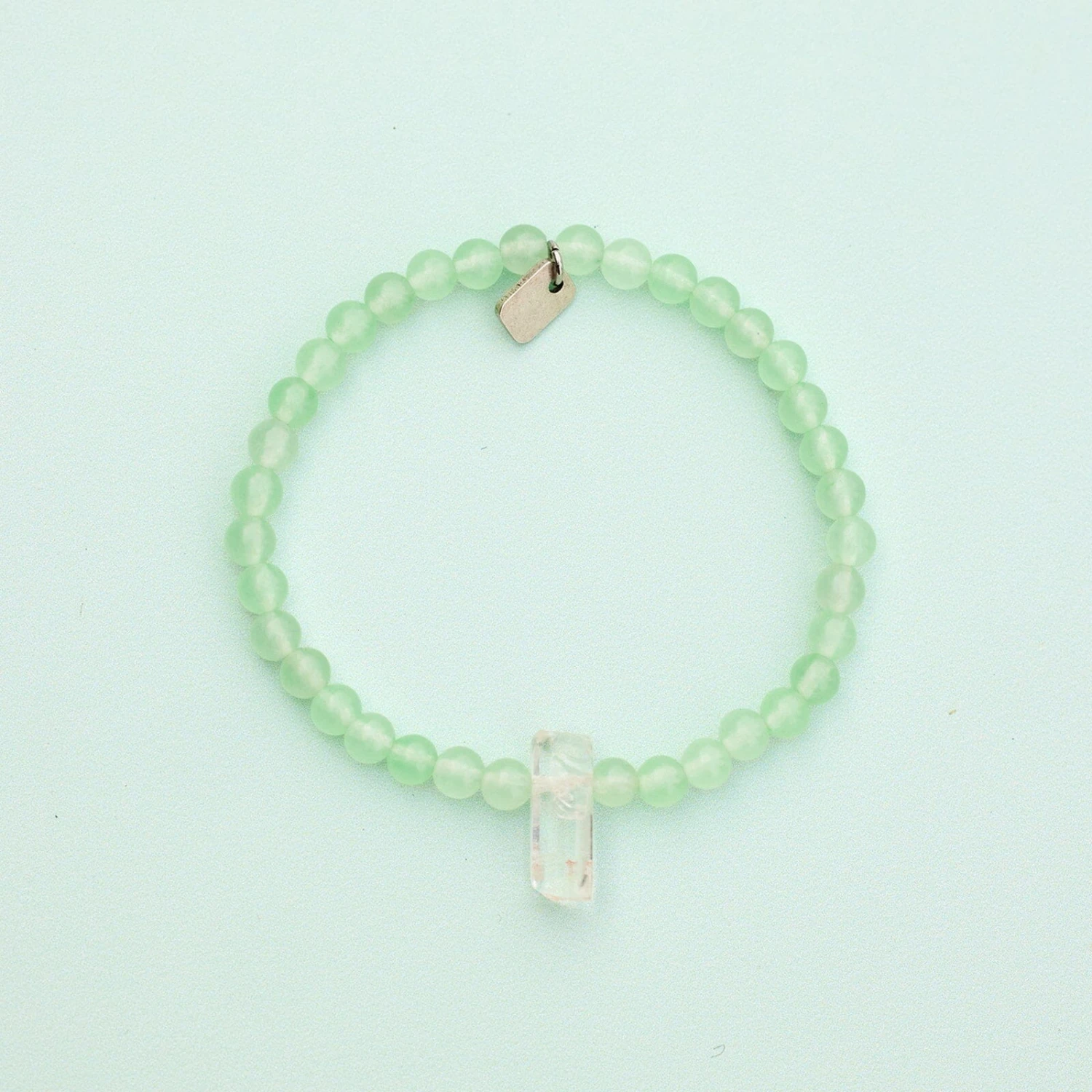 Kick your creativity into high gear and enhance your intuition with our Green Quartz Intention Stretch Bracelet. This slip-on style features a continuous band of genuine green quartz gemstones, plus a raw quartz bead for some extra magic.