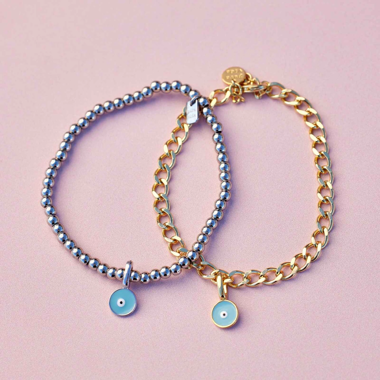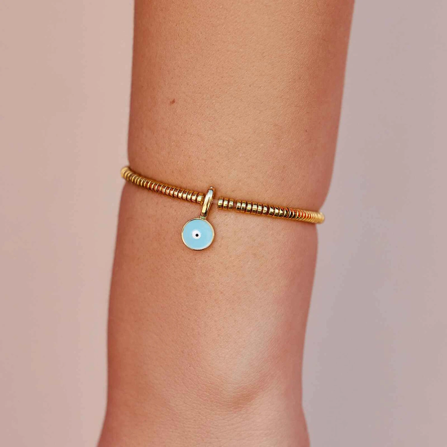 Representing protection, superstition, and communication, the Harper Enamel Eye Charm mirrors an ancient and powerful symbol. Harper’s take features a rhodium or gold-plated base painted with a plume, glossy enamel to add a pop of color to your charming piece.