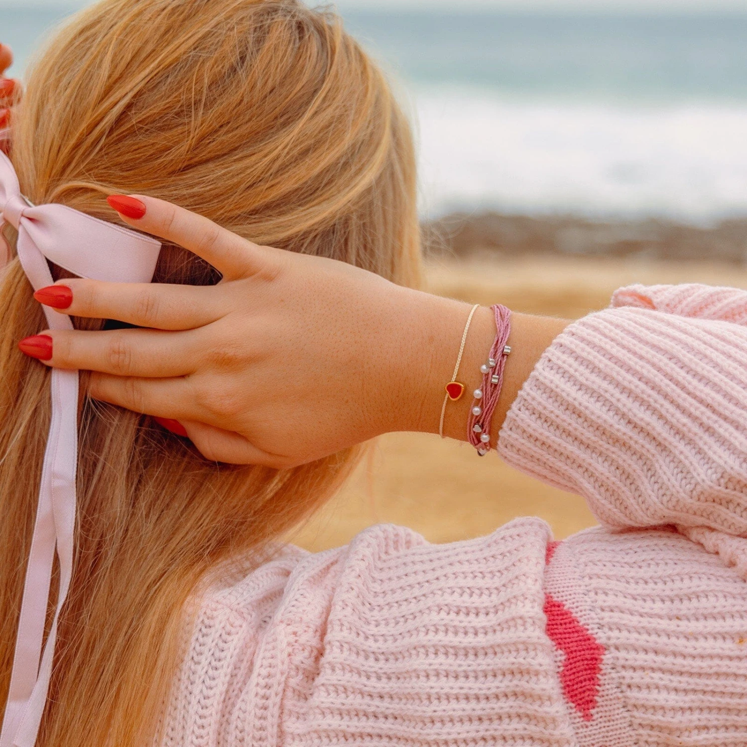 Our Heart Bead Gold Dainty Bracelet is ready to sweep you off your feet. Available in two string-and-charm combos—red with a rhinestone heart charm and cream with a red enamel heart charm—this delicate design adds a hint of romance to any outfit. For each bracelet sold, Pura Vida will donate 5% of the purchase price to the American Red Cross to support its mission to provide lifesaving blood to those in need.