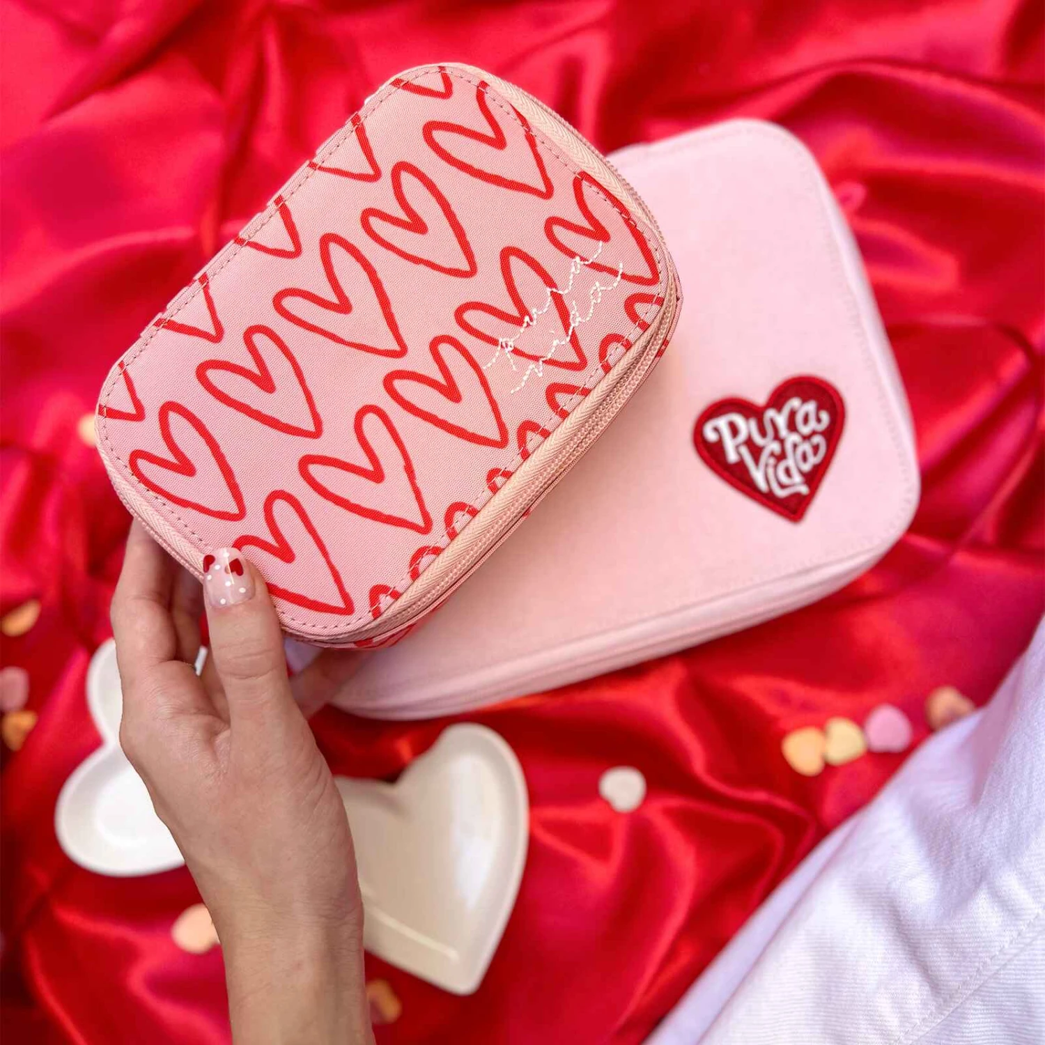 Wear your heart on your sleeve (or on your jewelry case.) The latest iteration of the Journey Jewelry Case donns a doodle-inspired heart design just in time for Valentine’s Day and includes practical storage for all your favorite PV pieces.