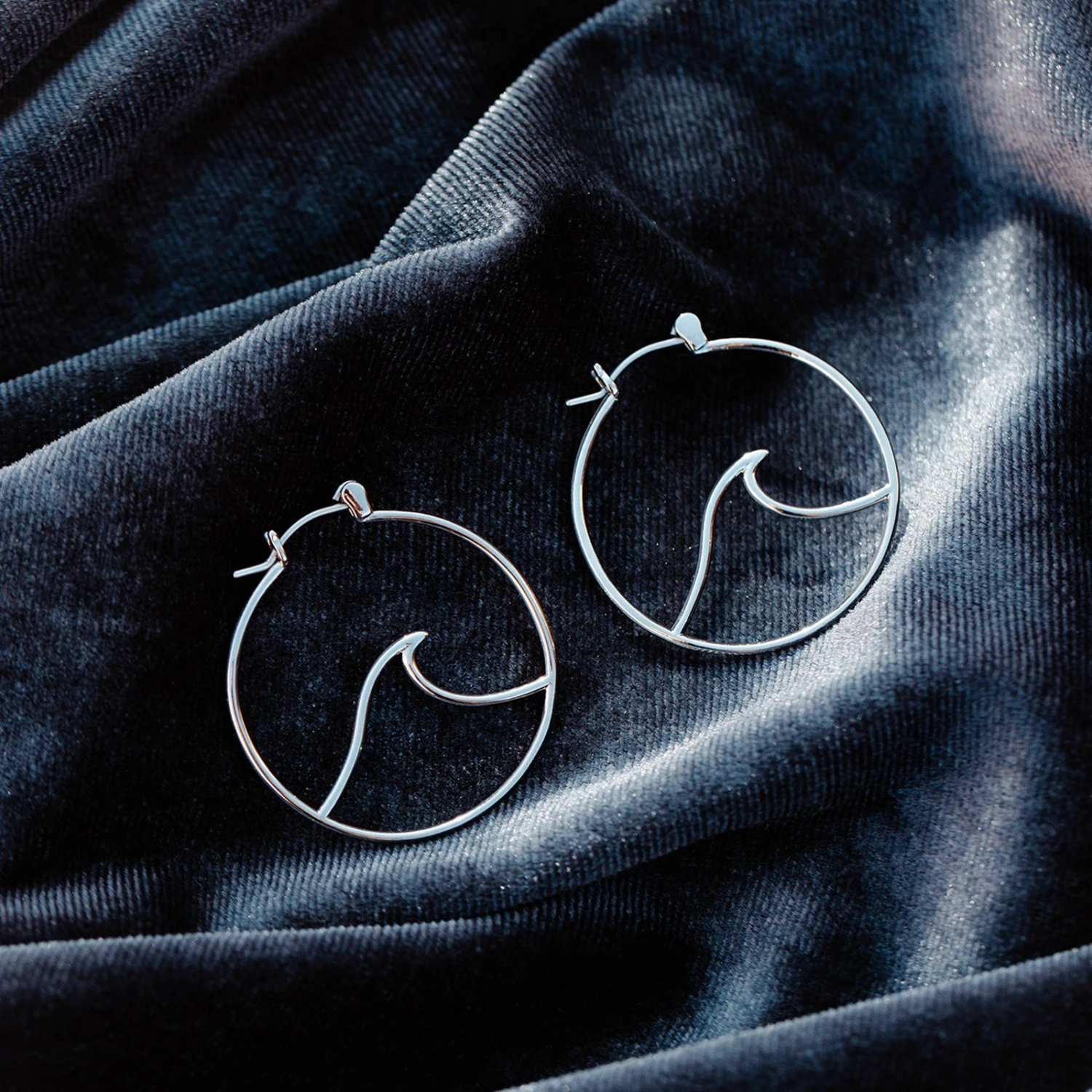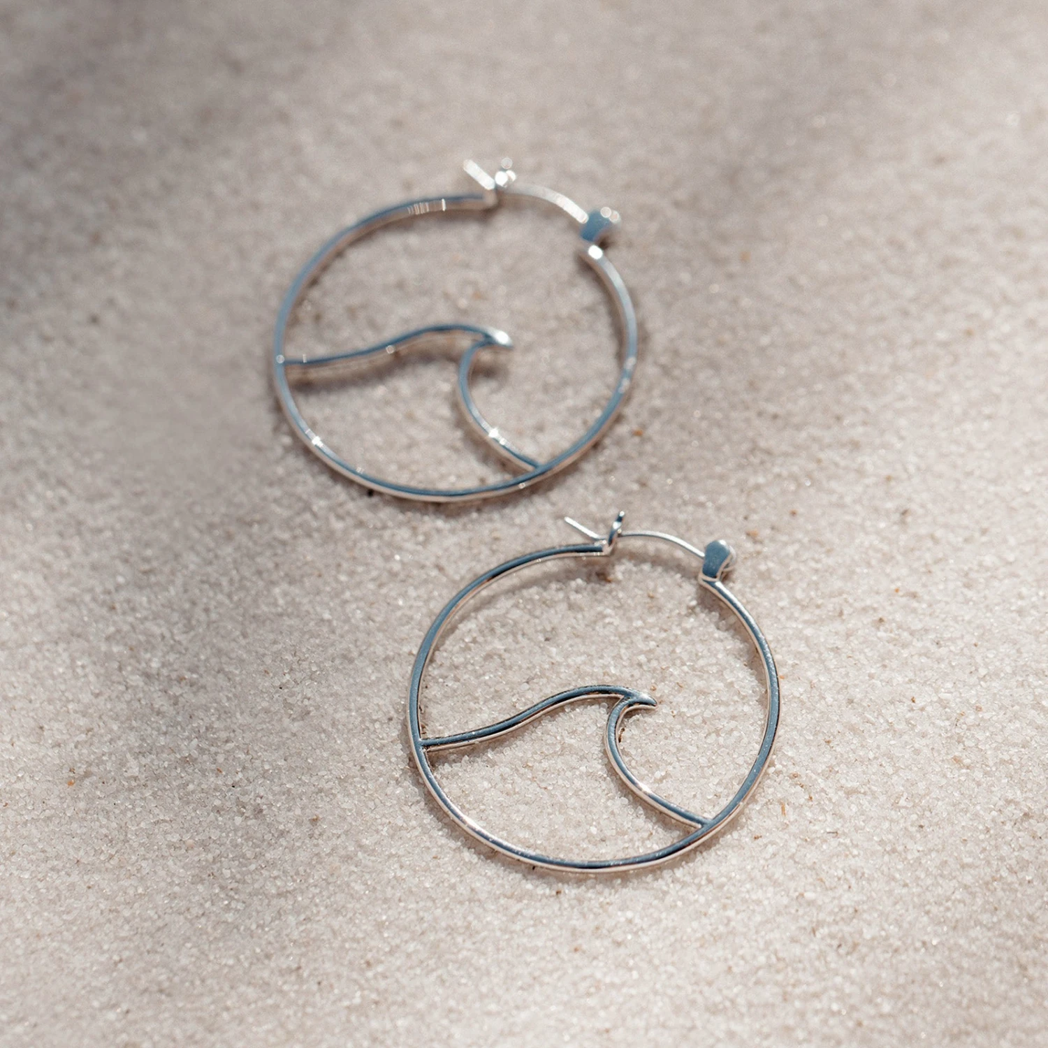 Searching for a killer style to add to your Wave collection? Look no further than our Large Wave Hoop Earrings! Available in a silver finish, these beach-ready beauties feature our signature Wave outline, for a surf style that’s made for sunny days.
