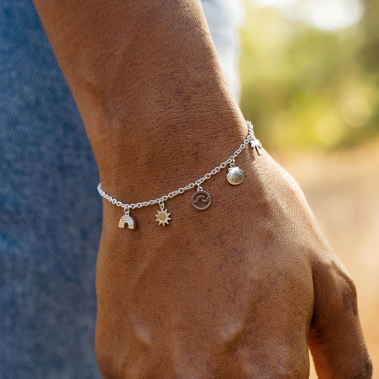 Say helloooo to Hawaiian style with our Maui Charms Bracelet! This paradise-inspired style is set on a delicate silver chain, with five dangling charms that’ll make you feel like it’s summer all year long.