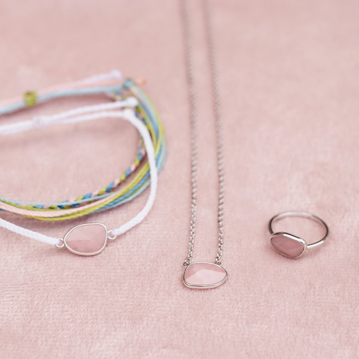Find greater love and compassion for yourself and others with our Mental Health Gemstone Pendant Necklace. Set on a delicate silver chain, this pretty pink style features a genuine rose quartz stone, which is faceted for a little extra sparkle.