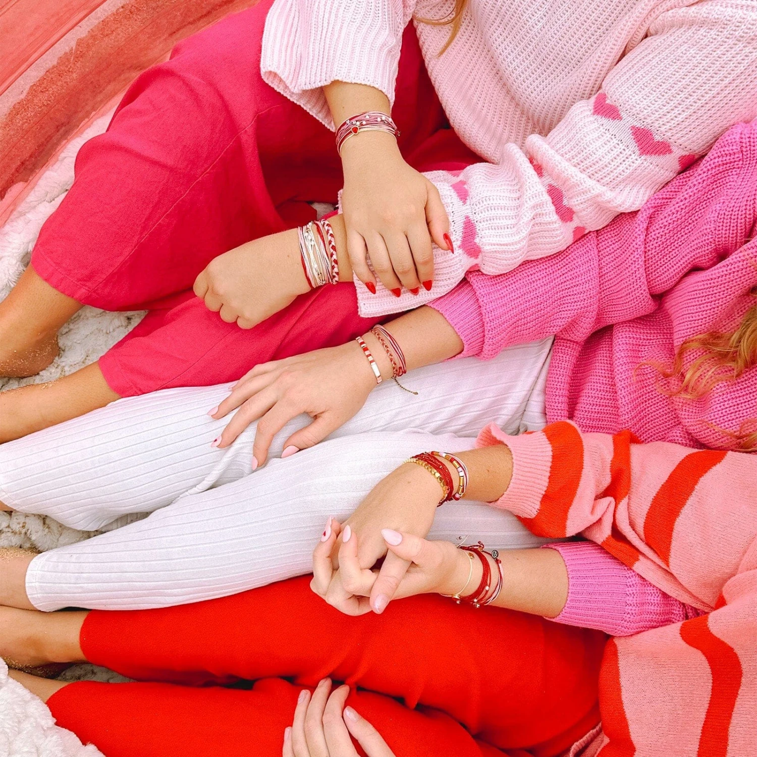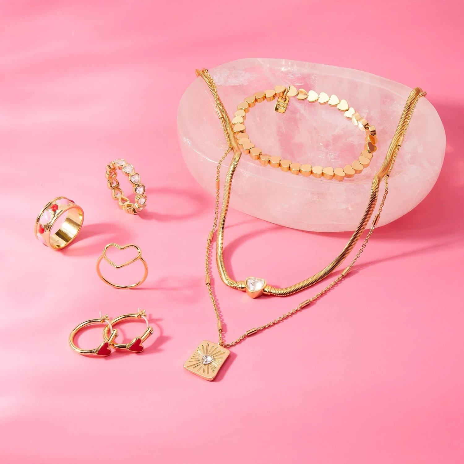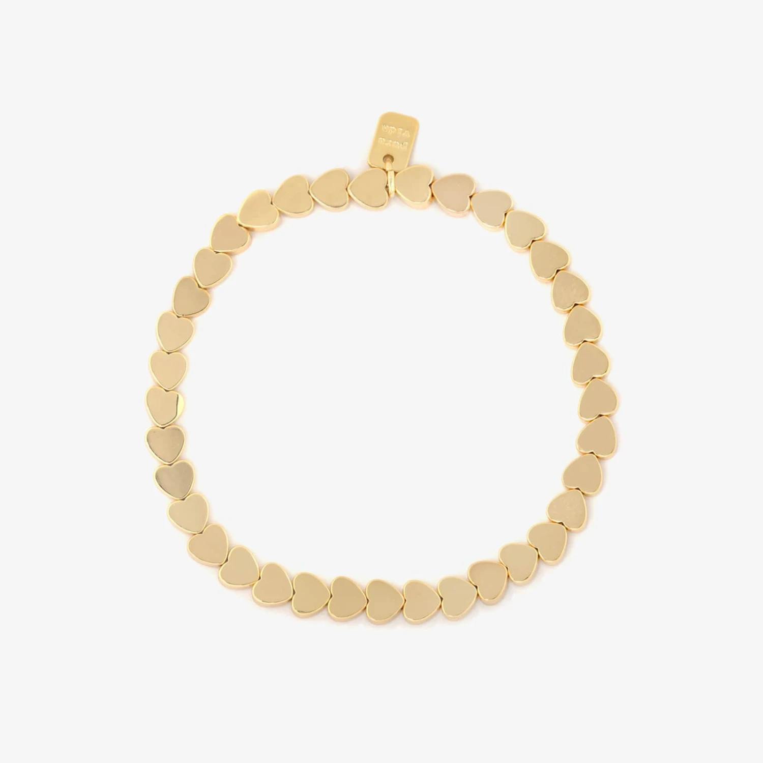 Like a heart beat, this simple, gold-plated design draws a steady drum of love around your wrist this Valentine’s Day. These heart-shaped beads are stringed onto durable, stretchy nylon for a flexible piece you can reach for all year long.