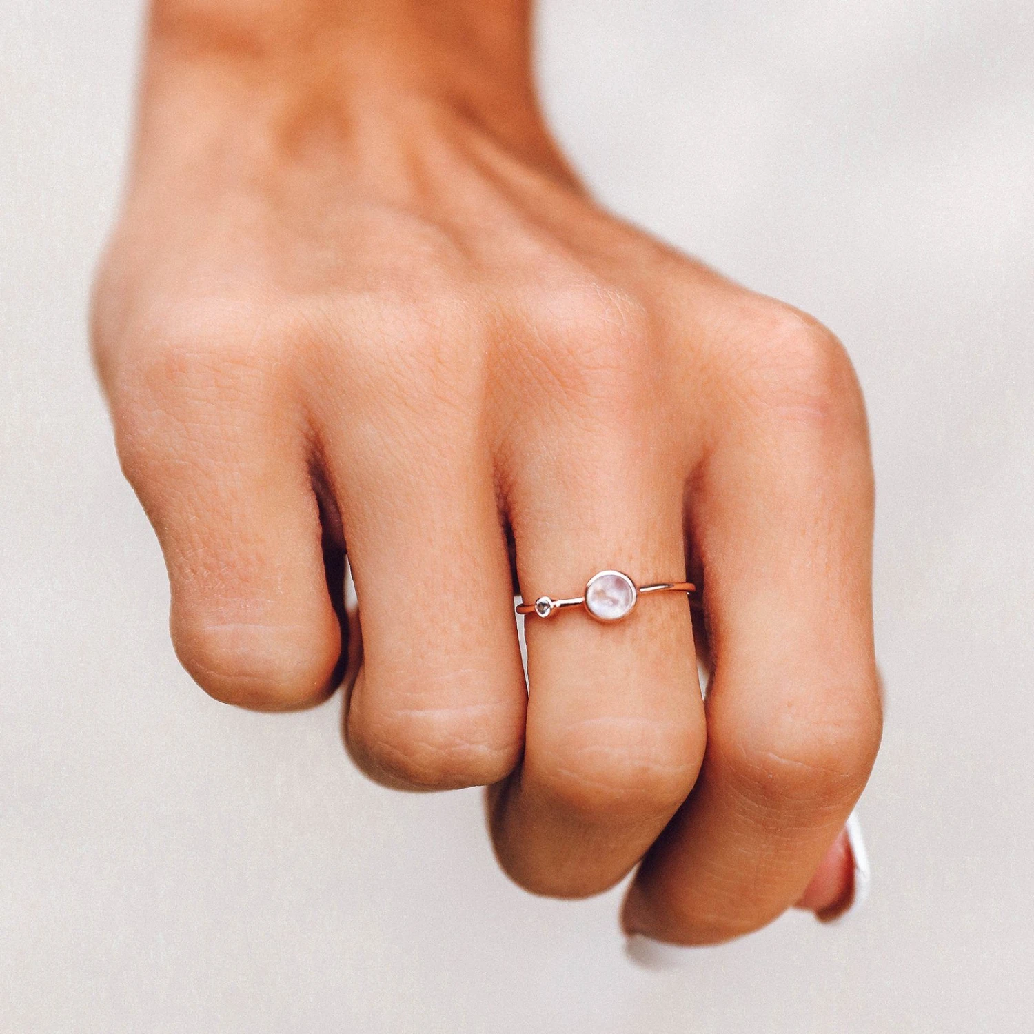 More is always more, especially when it comes to sparkling stones! Our Moonstone Double Stone Ring is set on a delicate rose gold band, and features both a teeny tiny crystal and a genuine moonstone gemstone (which is 100% unique!). Moonstone is known for sharpening your intuition, so you can trust your gut and look super chic.