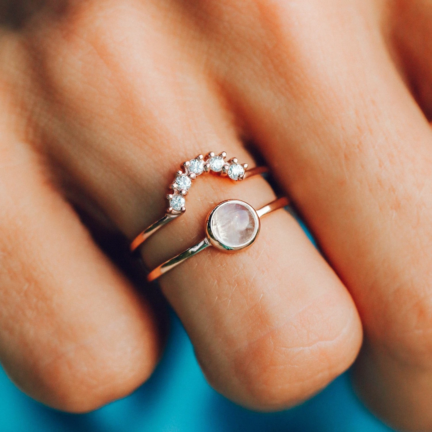 If dainty and delicate is your style, then we def. have the piece for you! Our Nesting Ring includes a duo of super-pretty styles and comes in two finishes – silver with a chalcedony stone or rose gold with a moonstone. One ring is made with a 100% genuine gemstone, and the other features itty bitty, sparkly stones.