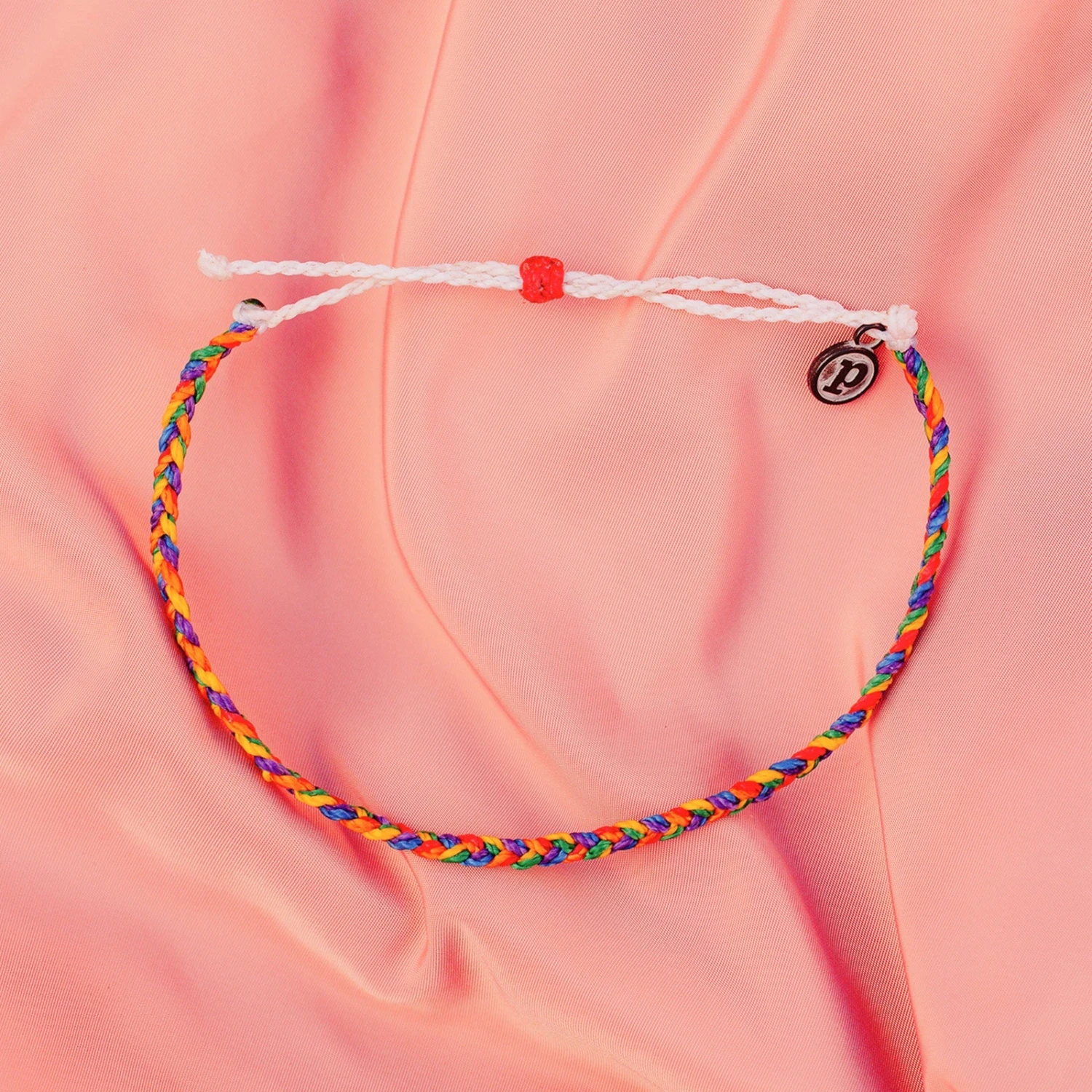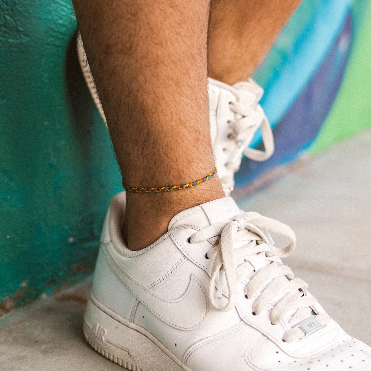 Our Pride Mini Braided Anklet is the perfect summer accessory to show your pride and celebrate the LGBTQ community all year long! Featuring a delicate mini braid of rainbow string, each anklet is not only adjustable, but also 100% waterproof!