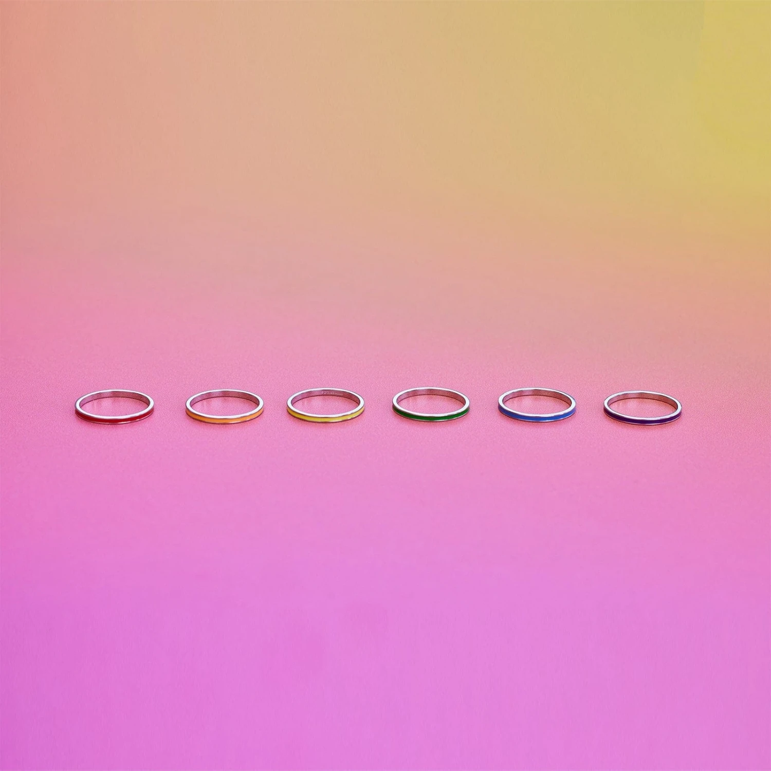 Let your pride reach new heights with the Rainbow Ring Stack! This six-ring design features enamel bands in an array of colors, which can be worn separately or all together. For every stack sold, Pura Vida will donate 5% of the purchase price ($25,000 minimum) to The Trevor Project, the leading suicide prevention and crisis intervention organization for lesbian, gay, bisexual, transgender, queer, and questioning (LGBTQ) young people.