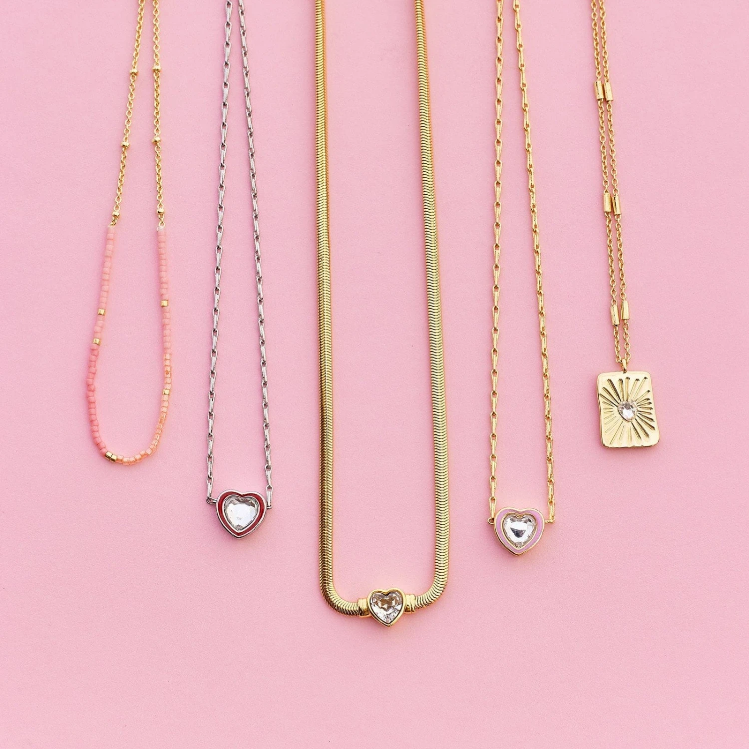 If bling is your thing, the Rhinestone Heart Choker is made for you this Valentine’s Day. Surrounded by a gold-plated snake chain, a dramatic heart-shaped center stone sits between two soldered sides to create a cohesive, continuous statement piece.