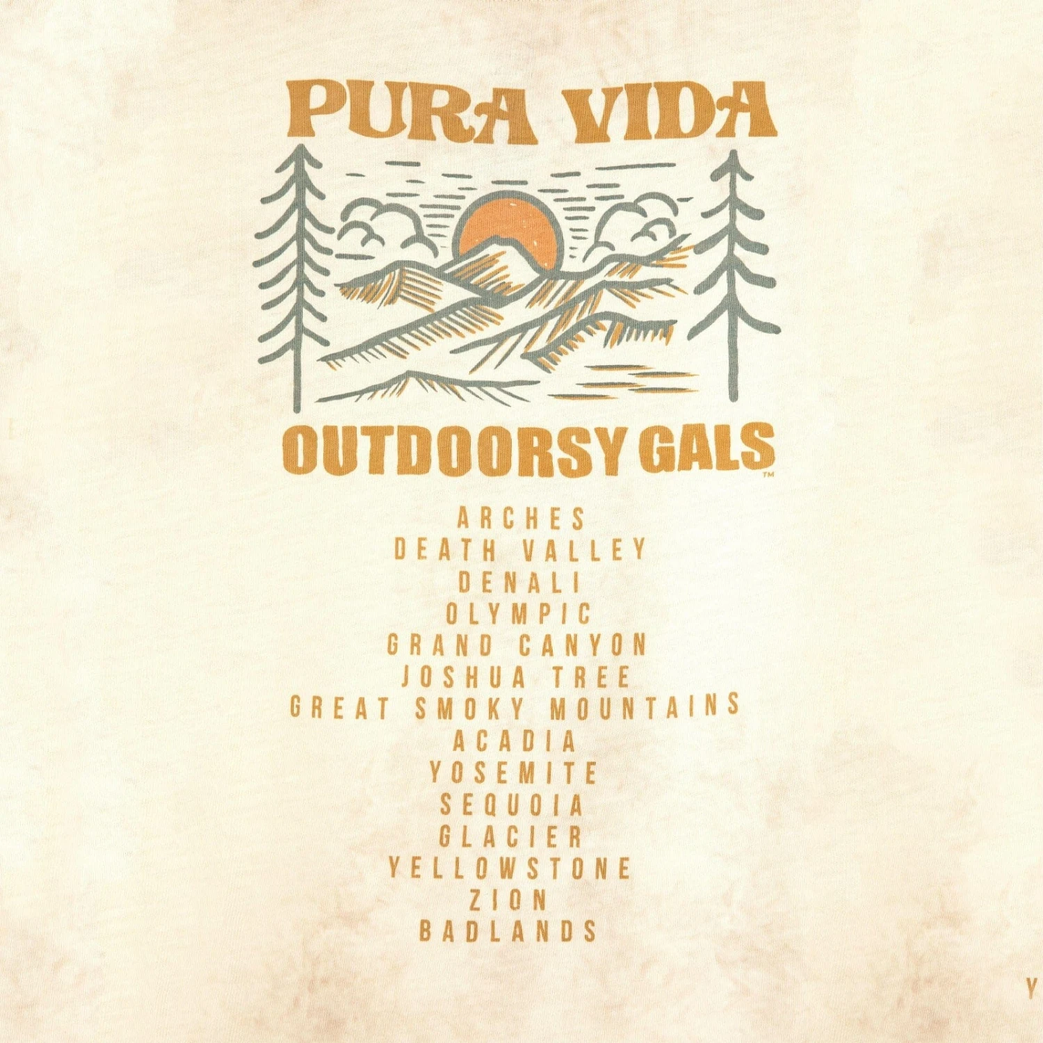 Tree-t yourself to our Outdoorsy Gals Crew Tee. Available in two colors, this crew-neck piece features a PV x OG logo on the front, with an outdoor graphic and tour-inspired design on the back. This style is part of our collaboration with @outdoorsygals, a global community for women who love the outdoors! They provide a space for outdoors-lovers to get inspired, ask gear/travel questions, plan hiking meet-ups, and attend group events and trips around the globe! From July 25, 2023 to July 1, 2024, Pura Vida will donate 5% of the purchase price ($25,000 max) to the National Parks Conservation Association, supporting its mission to protect and preserve America’s national parks for present and future generations.