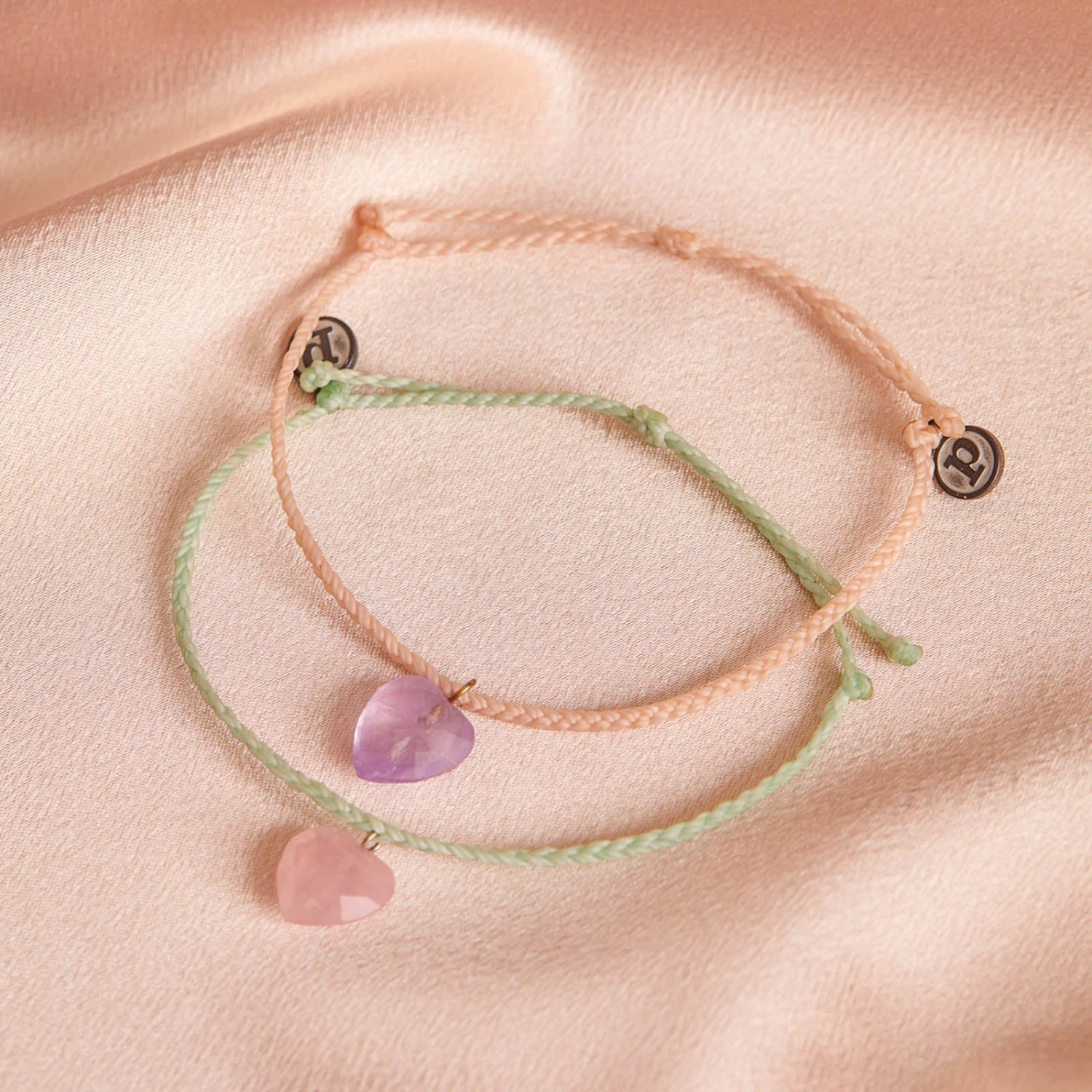 We’ll be the first to admit it: The Stone Heart Charm Bracelet is our one true love! Available in two string shades—vanilla and winterfresh—this bitty braid bracelet features a faceted dangling heart made from a genuine amethyst or rose quartz stone.