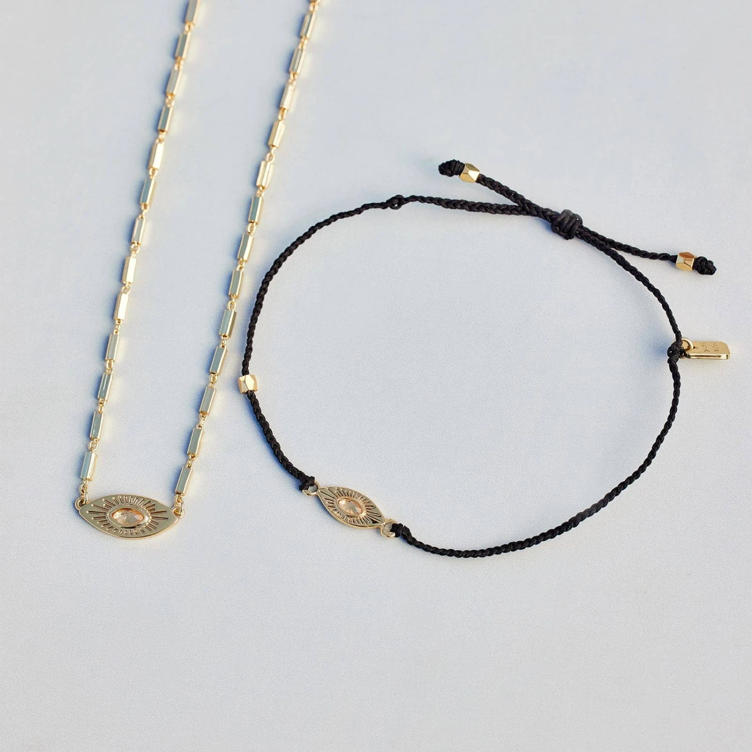 Carry the power of peace and protection with you everywhere you go. The delicate sunbeam detail against the striking crystal quartz center stone achieves a Cali-cool look and feel to build your aesthetic around.