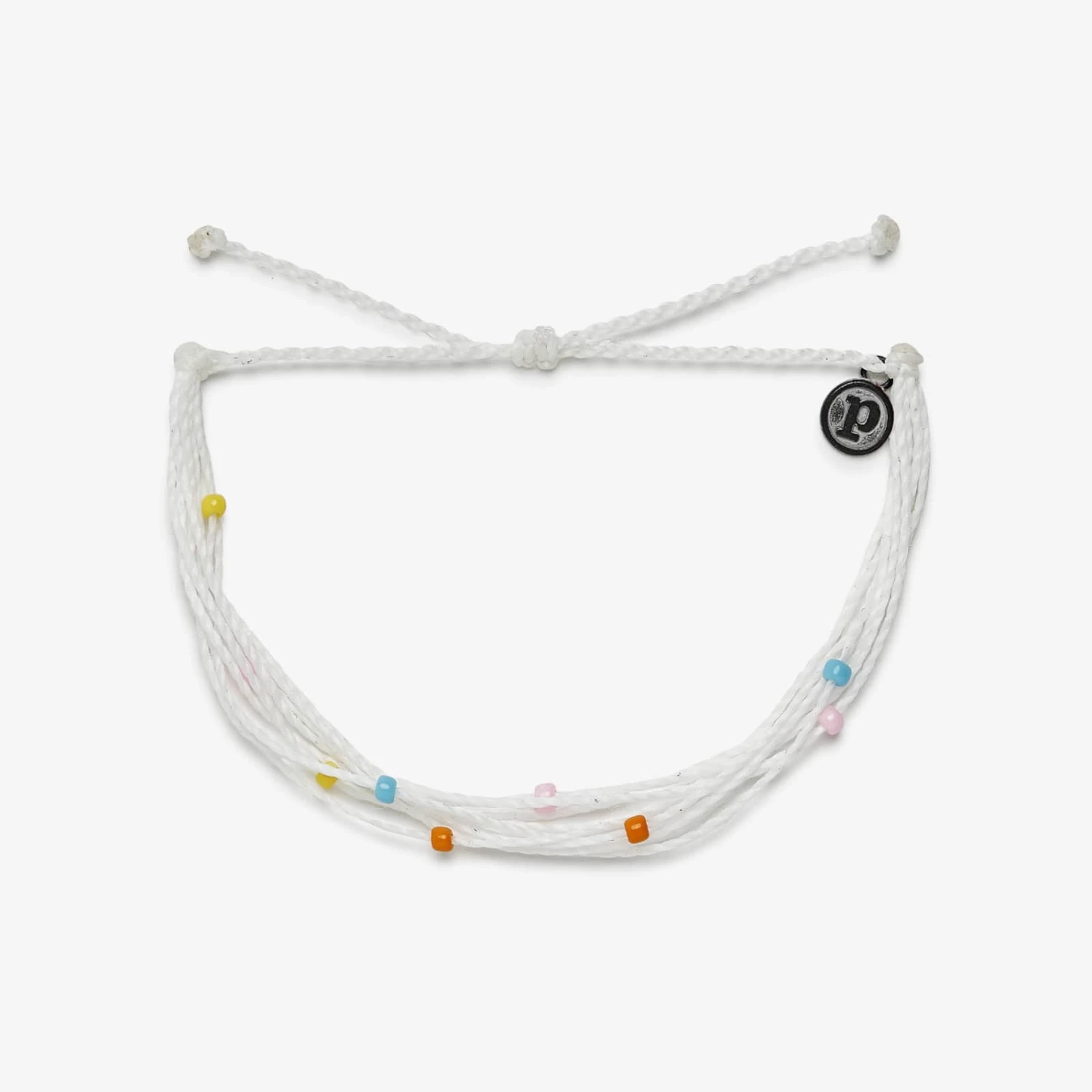 Make every day feel like a fiesta with The Birthday Party Project Malibu Bracelet! This white string style is dotted with confetti-like beads that add pops of color to your stack. For every bracelet sold, Pura Vida will donate 5% of the purchase price to The Birthday Party Project, supporting its mission to bring joy and celebrate the lives of children experiencing homelessness through the magic of birthday parties.