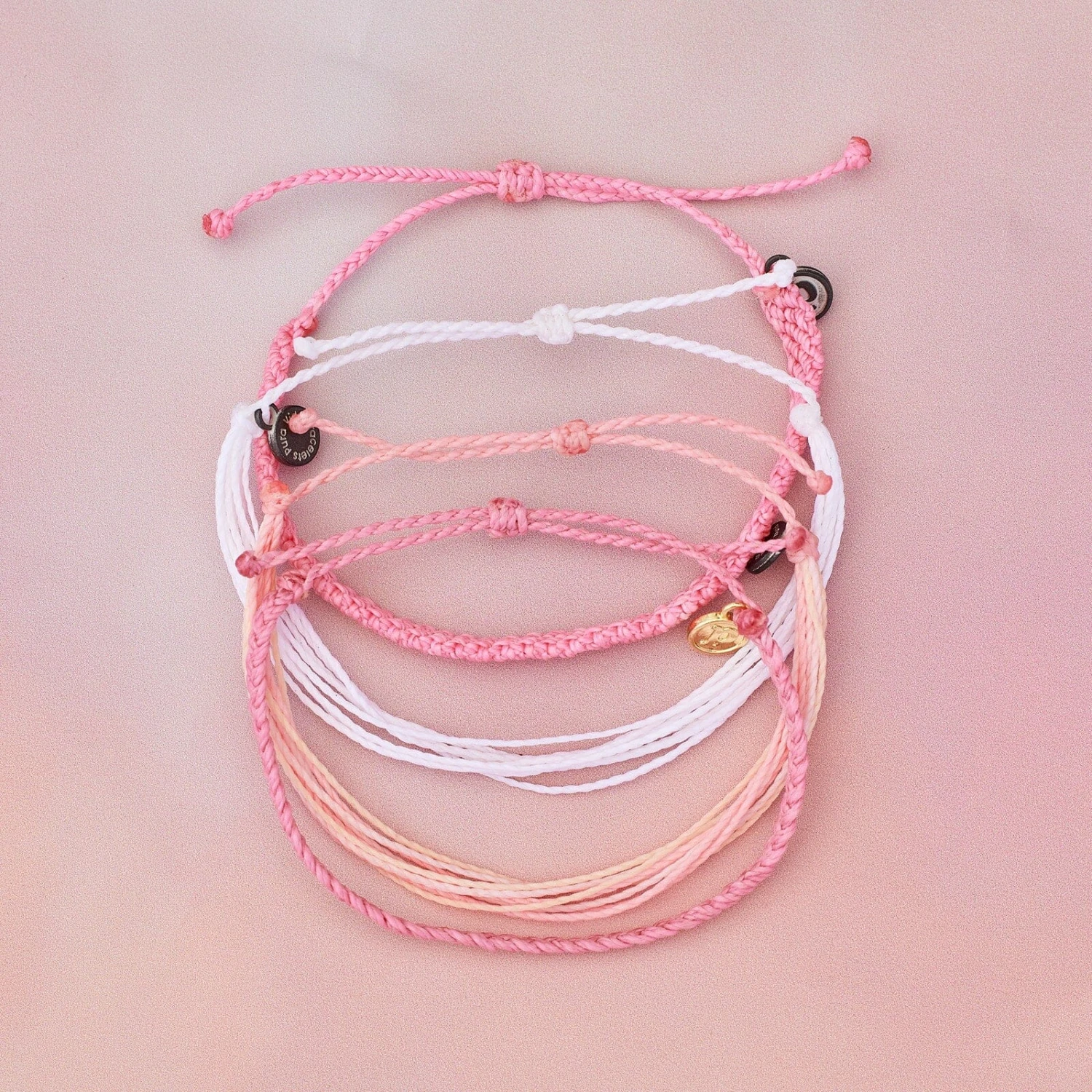 Save 34% on bracelets by purchasing our Pink Edit Friendship 5 Pack ($46 value), featuring 5 of our perfectly pink original bracelets! Wear them all together, mix and match your favorite combinations or share with a friend. Every bracelet is unique and hand-made therefore a slight variation in color combination may occur.